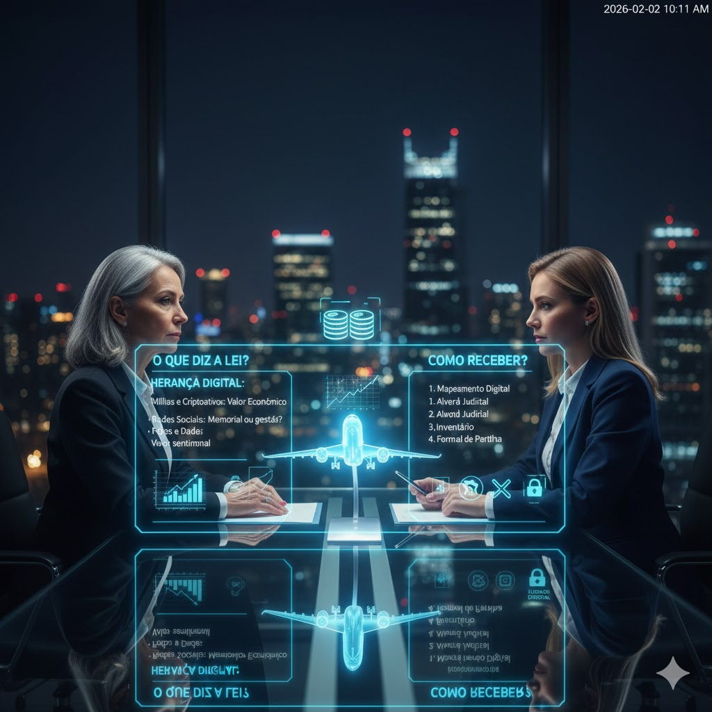 A Herança Digital engloba bens com valor sentimental (fotos) e financeiro (milhas, criptoativos, canais monetizados). Em 2026, a justiça brasileira reconhece que estes ativos integram o espólio. Para recuperar milhas ou acessar contas bloqueadas, os herdeiros precisam de um Alvará Judicial ou da inclusão destes itens no inventário.